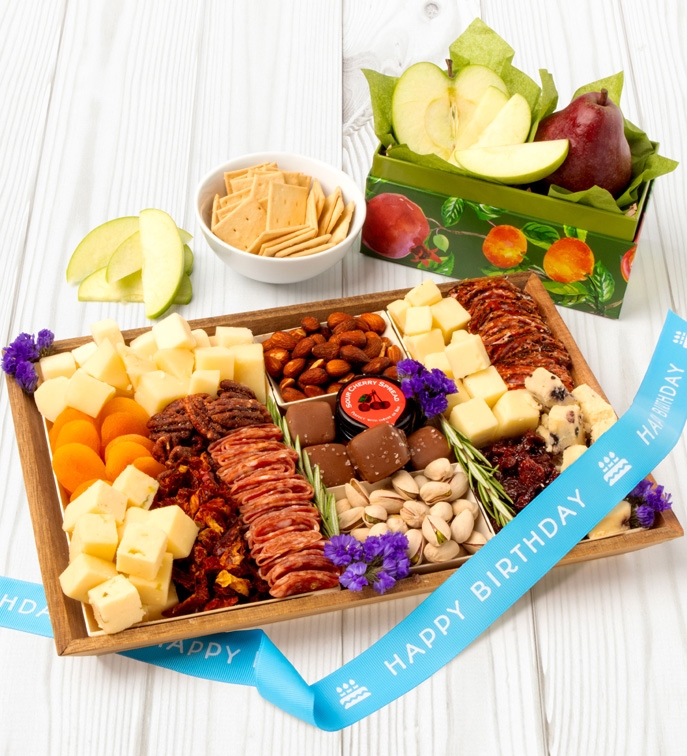 Elevate any birthday celebration with this abundant charcuterie experience. Featuring a curated selection of award-winning cheeses, savory Italian salami, candied pecans, pistachios, dried fruits, and sour cherry spread, this board balances sweet and savory for every palate. Fresh apples and pears add a crisp finishing touch, making this a festive centerpiece for any birthday gathering.